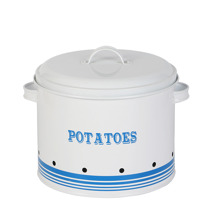 *NO MORE FAST SPROUTING POTATOES - The ventilated darkness of the tins helps keep your vegetables fresh. The small holes makes the aerating canisters great for stretching the life of potatoes and onions (but keep them apart – they spoil each other). The 1cm holes also keeps out unwanted animals!*DECOR WITH FUNCTION - These cute retro white pots have strong carry handles and easy to open lids. The attractive display of the rustic and sturdy decorative container on your countertop will make the perfect addition to your home farmhouse kitchen.*KEEP YOUR COUNTERTOP ORGANIZED - Use these durable veggie holder sets for the organization of your counter-top or pantry. They look neat on countertops and can keep it clean, not messy!*SET OF 3 IN GIFT BOX - This pack of three product comes well packaged in a stylish gift box - making the perfect "must-have" present for mom, friends and housewarming.